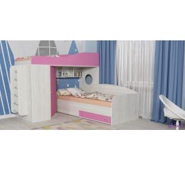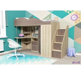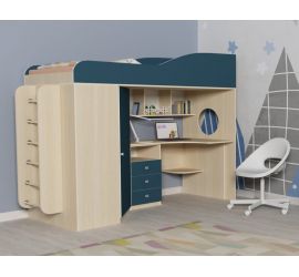 Второй вид кроватей-чердаков рассчитан на возраст детей от пяти лет. Спальное место в таком случае располагается на высоте 1,3-1,6 метра. На первом ярусе чаще всего есть шкаф и рабочая зона в формате письменного стола и книжных полок.