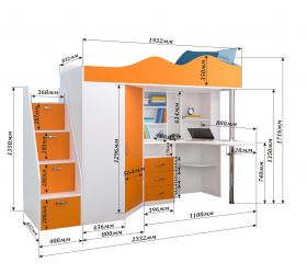 В таких кроватях спальное место располагается на втором ярусе. А вот снизу может располагаться место для творчества, рабочее место, игровая зона, шкаф, комод или полки. Для того, чтобы залезть на кровать, ребенку необходимо будет взобраться по специальной лестнице. Детская кровать-чердак полностью безопасна для малыша. Это объясняется ее устойчивостью, наличием бортика безопасности и его высотой, надежностью крепежа, удобной лестницей и высотой пространства между двумя ярусами.