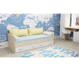 Кровать Каспер с мягкой спинкой и фотопечатью (800х2000) Белый/Голубой