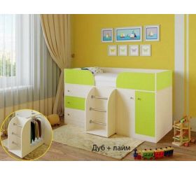 Кровать-чердак Кадет-2 угловая с металлической лестницей Белое дерево/Оранжевый