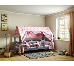 Кровать Соня с надстройкой (домик) с балдахином Лаванда/Коралловый