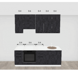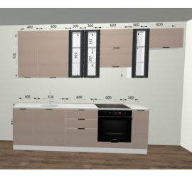 Размер кухонного гарнитура: Ширина 2400 мм. Высота 2132 мм. Глубина 600 мм. (с учетом столешницы)