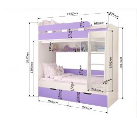 Спальное место: верхнее 800х1900 мм, нижнее 900х2000 мм