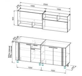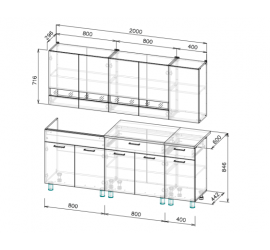 Готовый кухонный гарнитур КГ-2 2,0м станет современным, уютным решением для Вашей кухни. Размеры: Ширина - 2000 мм; Высота - 2140 мм; Глубина - 600 мм.