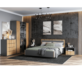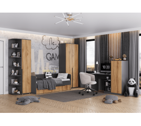 Шкаф двустворчатый для одежды Стил темно серый лофт / дуб золотистый сочетает в себе красоту и практичность, что делает ее идеальным вариантом мебели для украшения вашей современной комнаты.